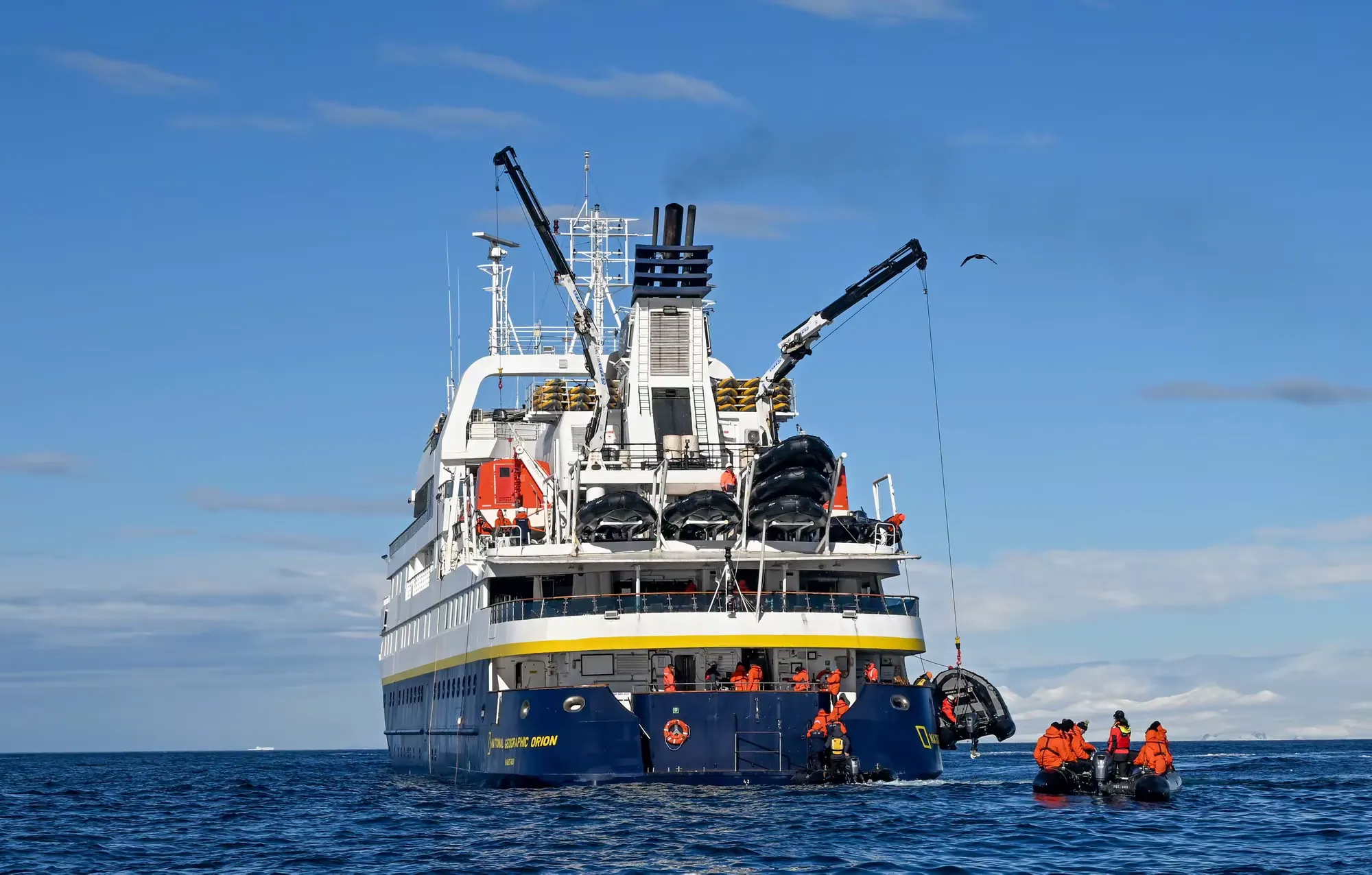 我们的邮轮是“国家地理猎户座号(National Geographic Orion)”。邮轮不大,总吨位不到四千吨,载客106人。这可以让邮轮靠陆地更近,方便登陆。