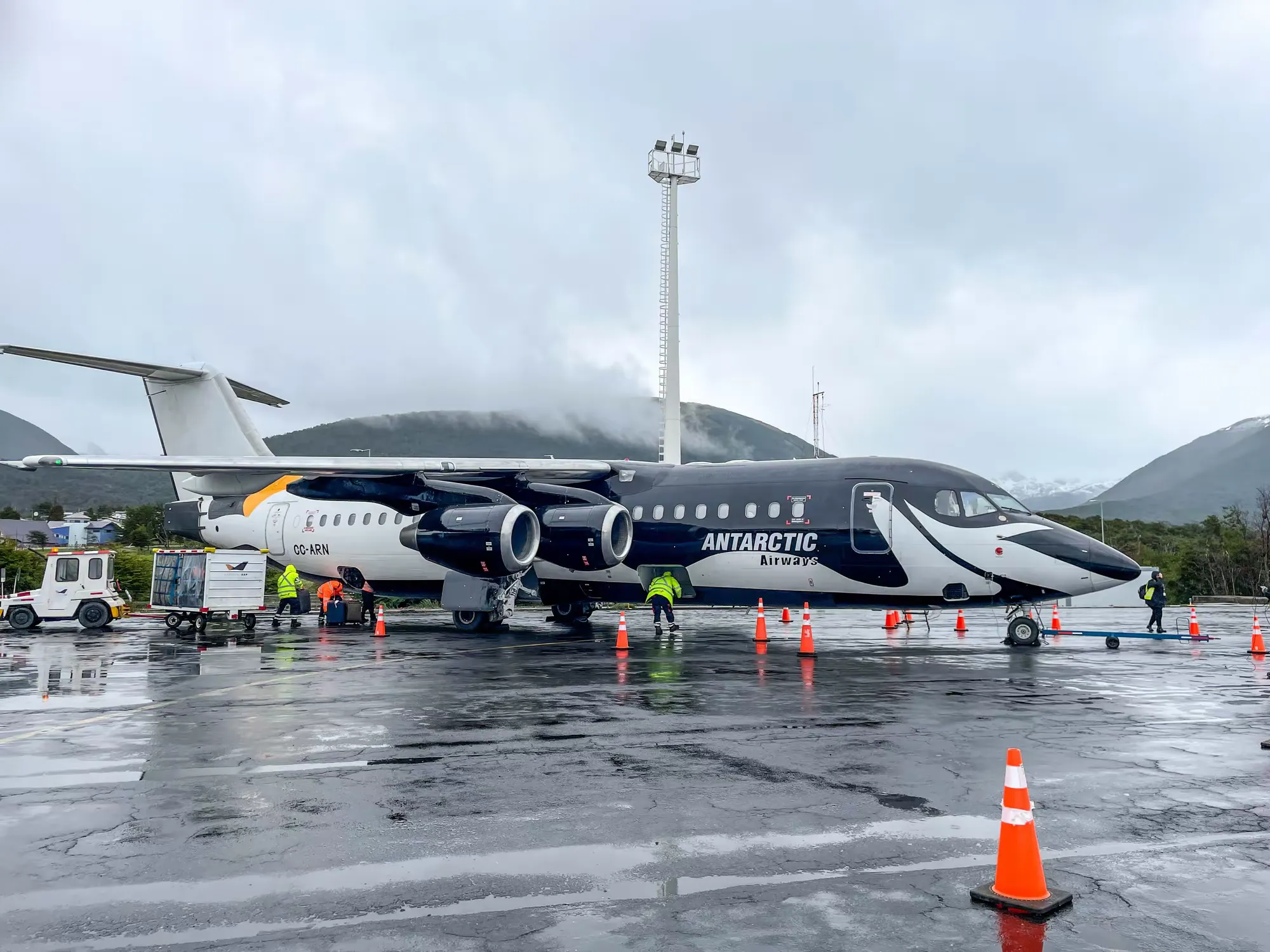 飞往南极的飞机是 Avro RJ85 ,英国产的。载客85人的飞机,不算大,却有四个引擎。
