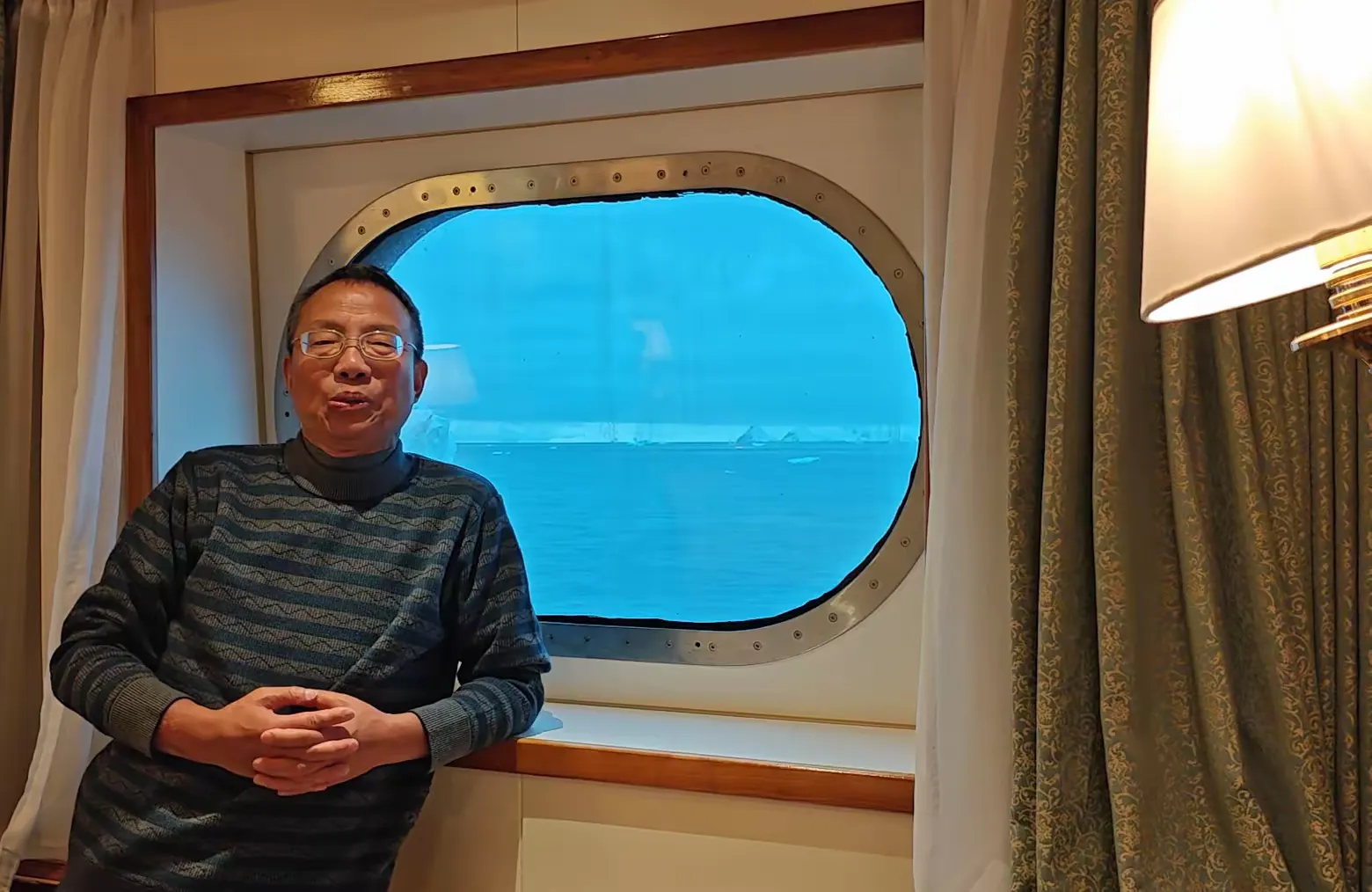 这是团友从邮轮上拍下的照片,远处是乔治王岛。中间岛上红色的房子,据团友介绍是我们中国的长城科考站。