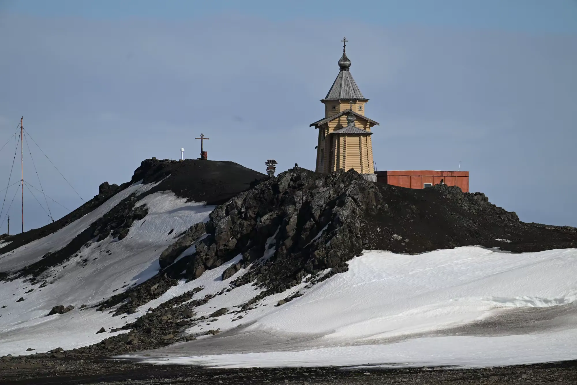 这里还有俄罗斯科考站。这是俄式的东正教堂,带洋葱顶的。
