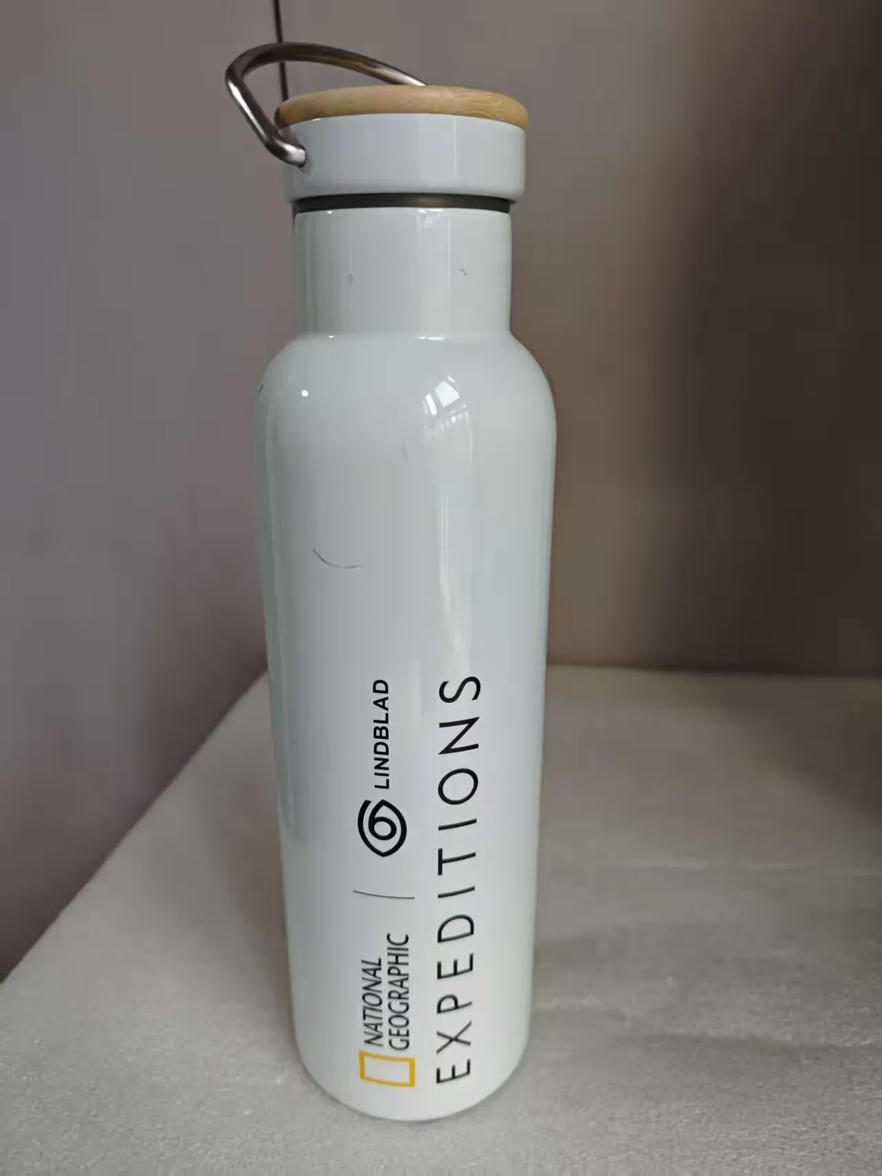 保温杯上的标志:National Geographic 是探险游的主办方,Lindblad Expeditions 是邮轮的运营方。