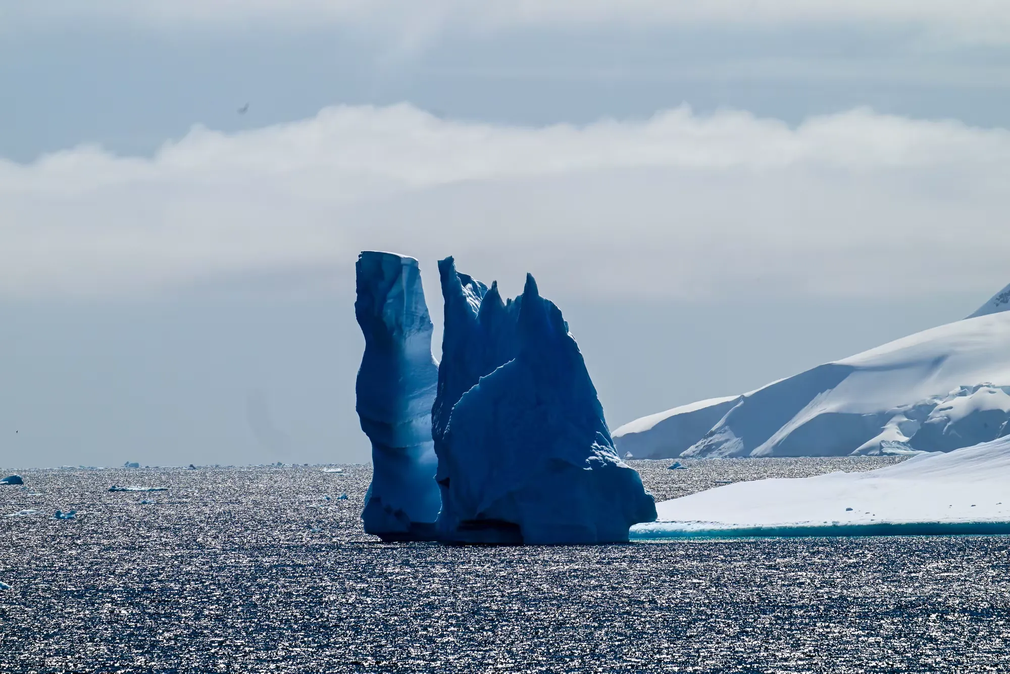 夏洛特湾里散布着晶莹的浮冰,就像钻石,装点着美丽的夏洛特。