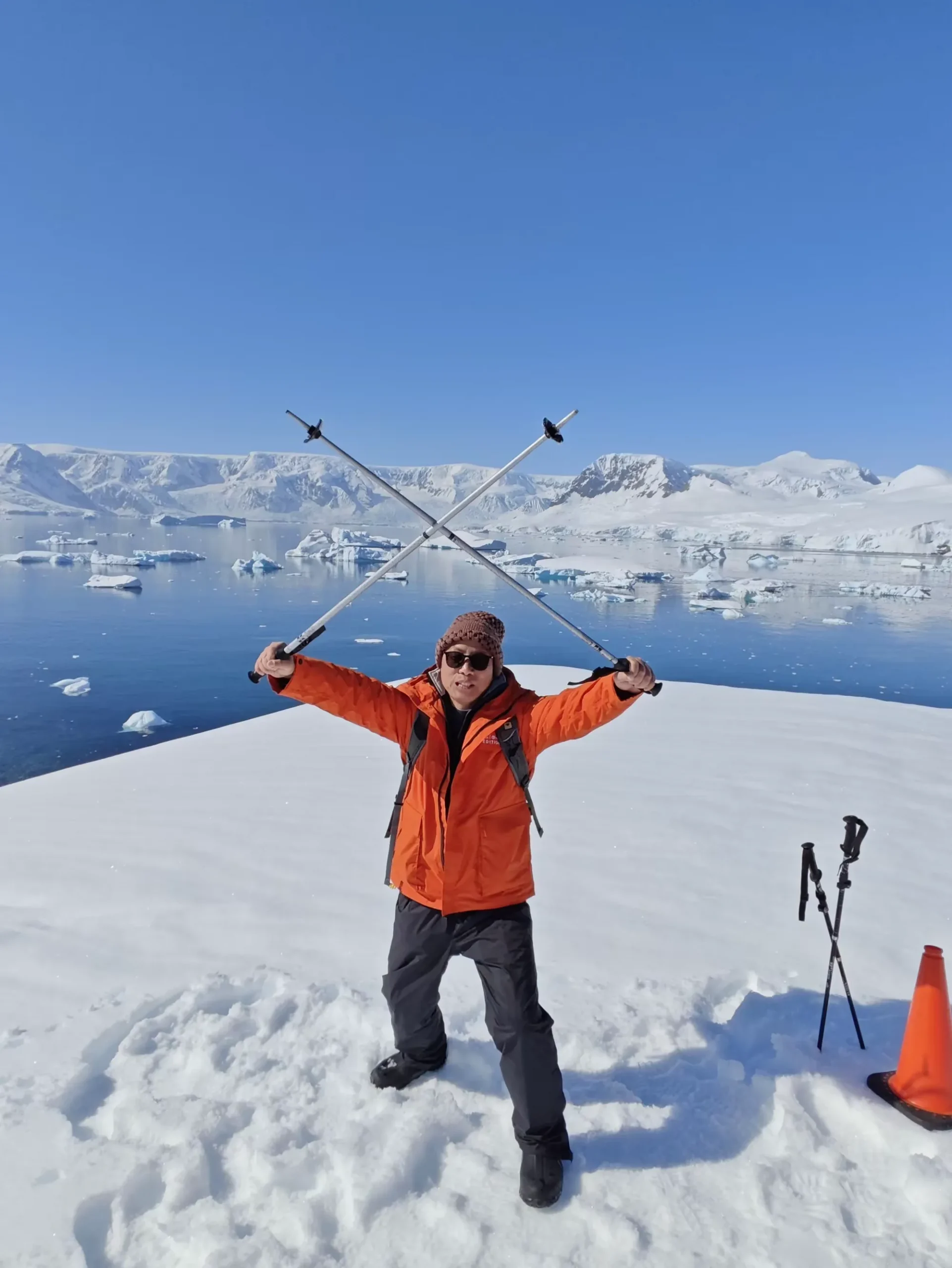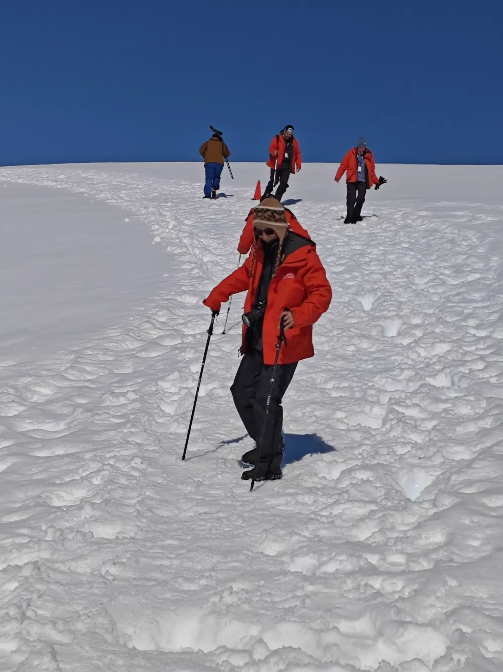 组织方的先遣队早已经先期登陆,在冰原上踩出一条相对安全的线路,在危险区域安放警示标识。