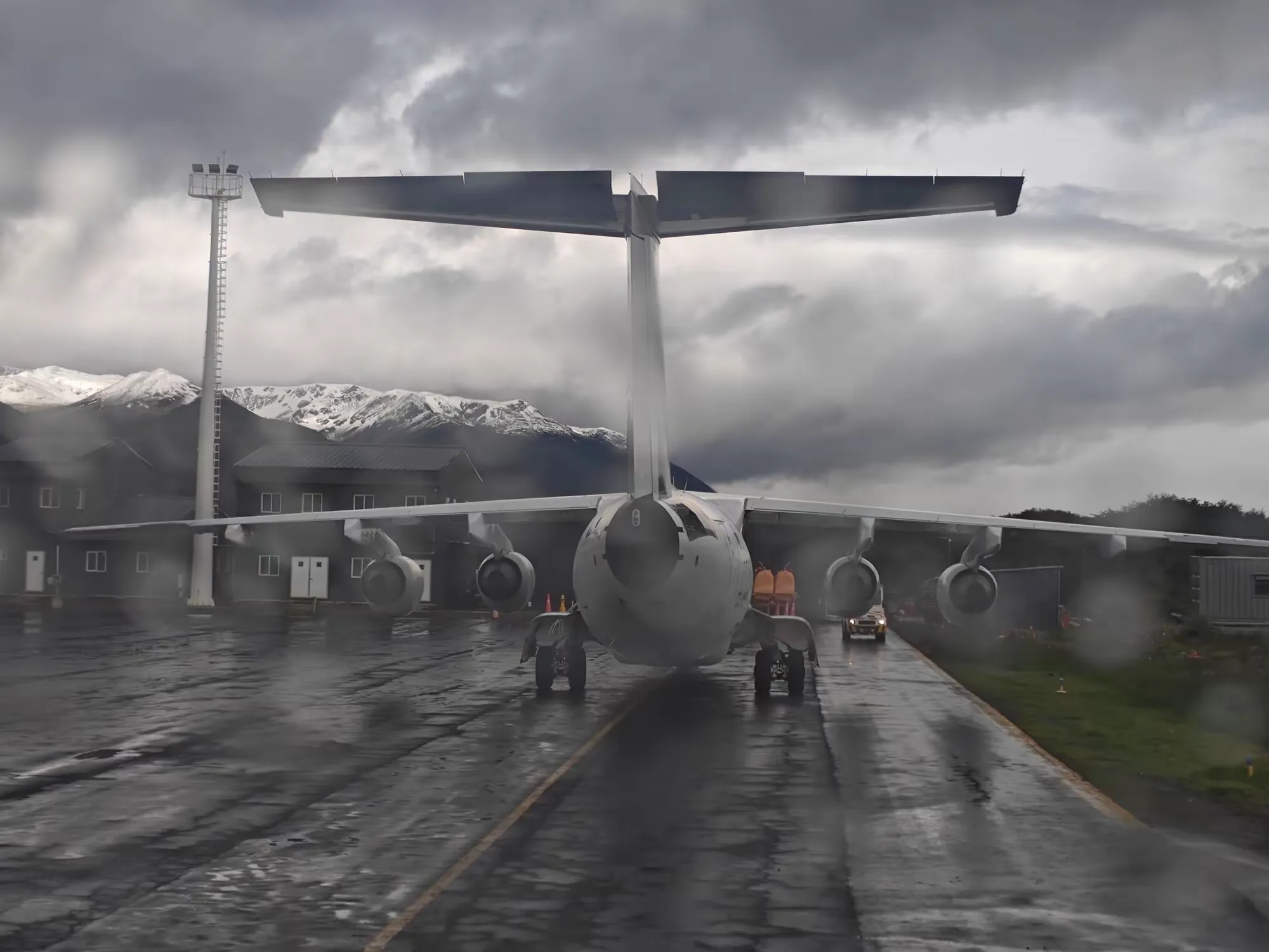飞机滑向跑道。下午,我们将抵达智利首都圣地亚哥。